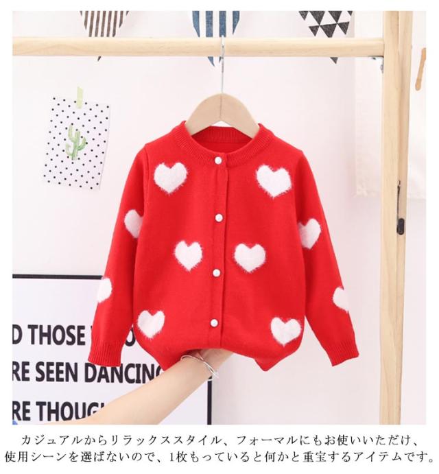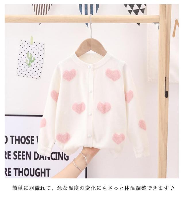 子供 女の子 ニットカーディガン Uネック ジュニア 長袖 ハート柄 かわいい シンプル 100 110 120 130 140cm ギフト キッズ服 こども服 子ども 羽織 キッズカーディガン 羽織り オシャレ 可愛い 子供服 小学生 通学 普段着 春秋冬