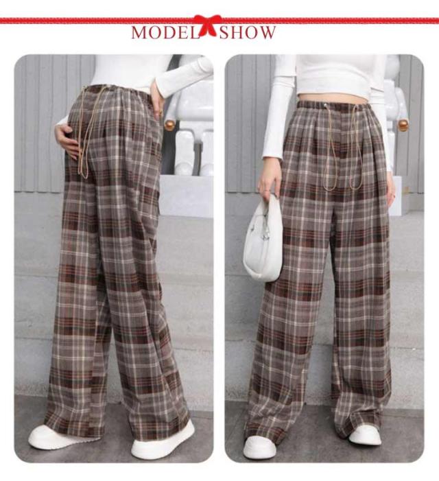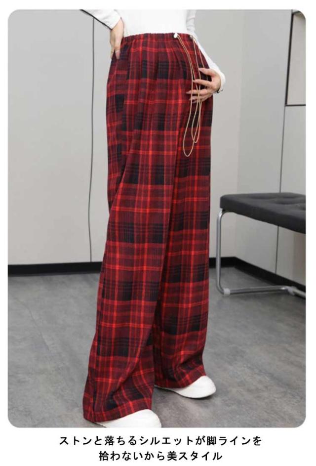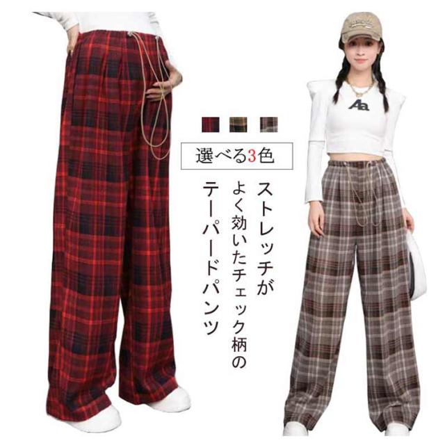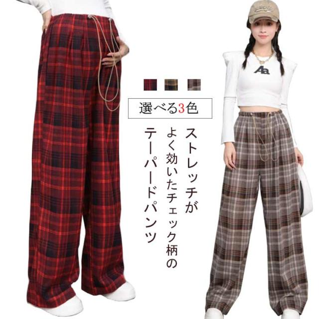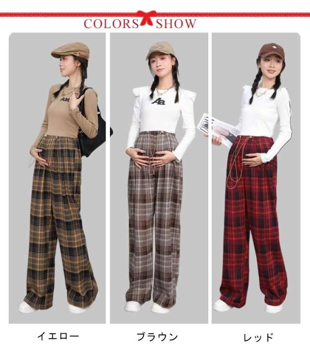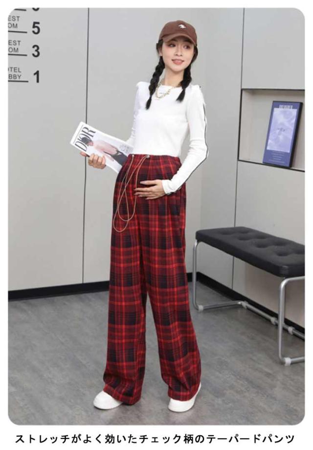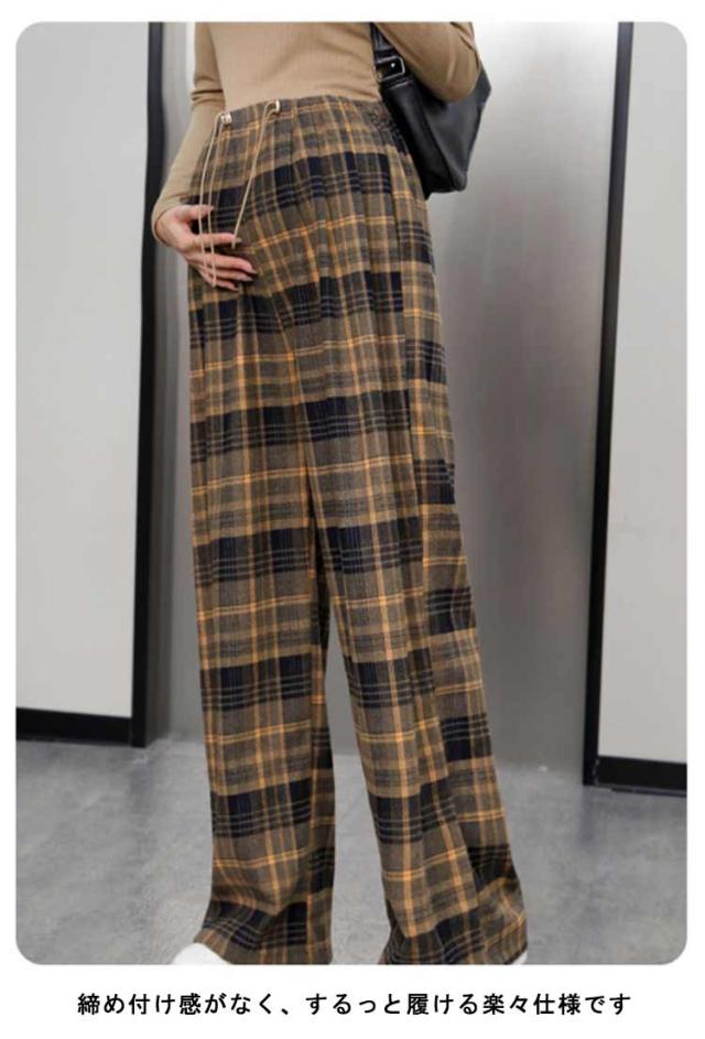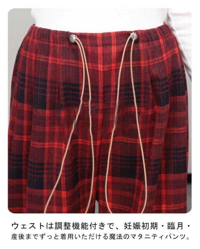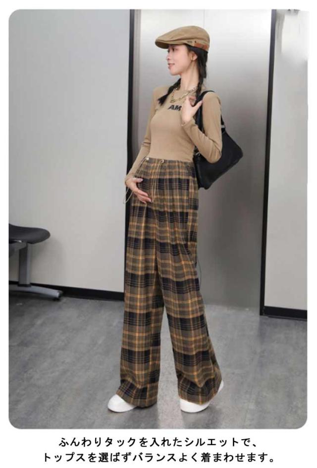 マタニティ パンツ チェック柄 産前産後対応 ストレッチタックワイドパンツ マタニティパンツ ズボン ボトムス 妊婦服 秋 春 春夏 冬 動きやすい ゆったり 大きいサイズ レディース ロングパンツ アジャスター付き 部屋着 外出服 リラックスウェア カジュアル 送料無料