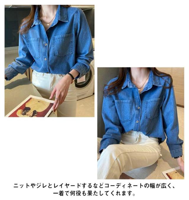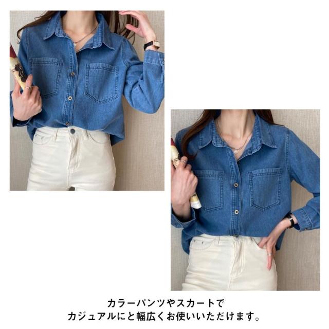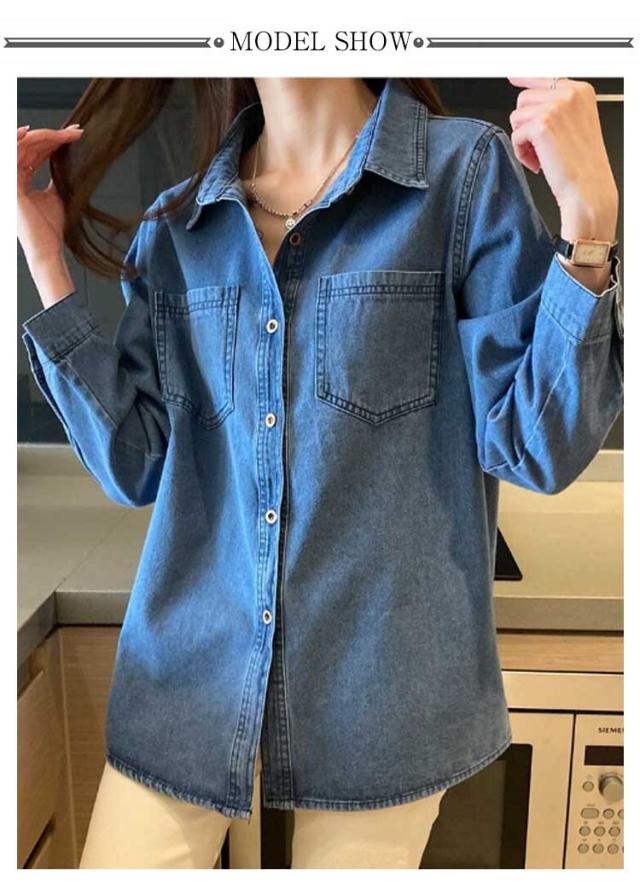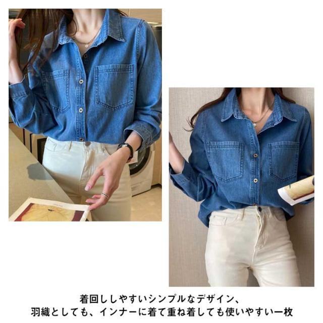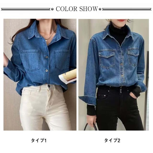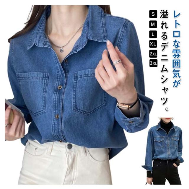 デニムシャツ レトロ デニム シャツ レディース ウエスタンシャツ 長袖 デニムシャツ デニム シャツブラウス トップス 羽織り カジュアルシャツ 胸ポケット 大きいサイズ 春 秋 服 20代 30代 40代 送料無料