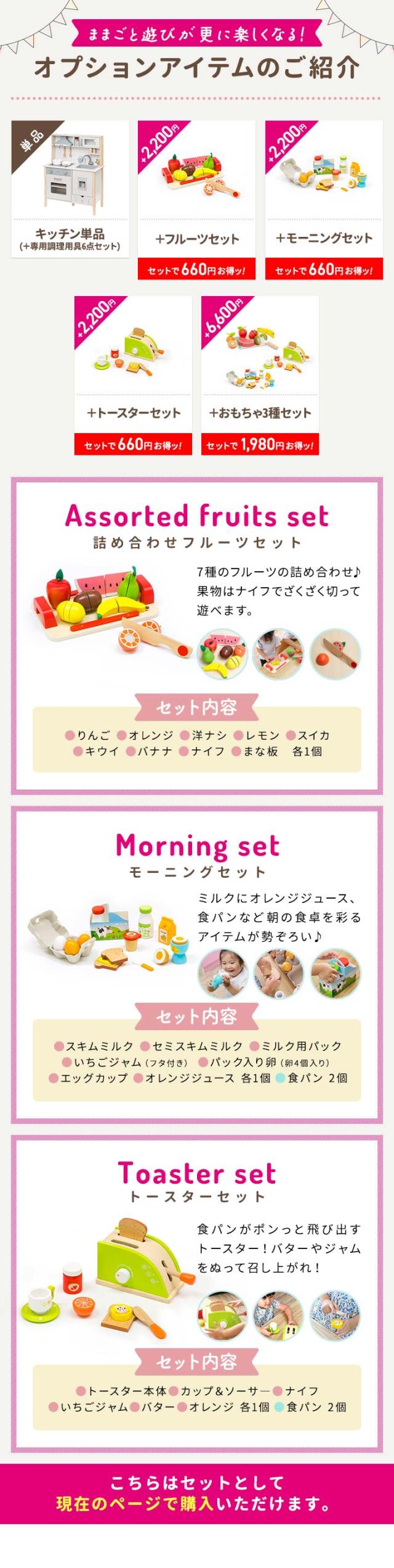 | ※[店舗管理用 URL]a07279 ※[品番]【本体/調理用具6点セットのみ:a07279】【本体+フルーツセット(+2200円):a04228】【本体+モーニングセット(+2200円):a04229】【本体+トースターセット(+2200円):a04230】【本体+おもちゃ3種セット(+6600円):a04231】 |