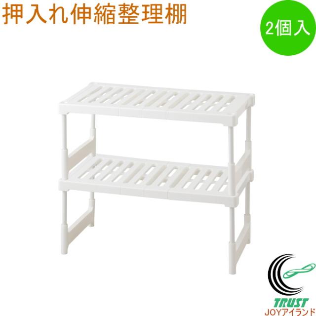 押入れ伸縮整理棚 ホワイト 2個入 押入れ収納 押入れ クローゼット 収納 収納棚 収納ラック 整理 整頓 伸縮 すのこ形状 フリーラック 1個入 2個セット ホワイト パール金属