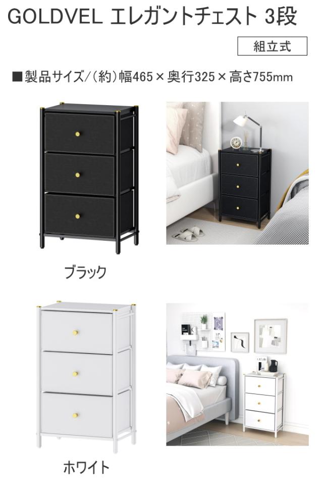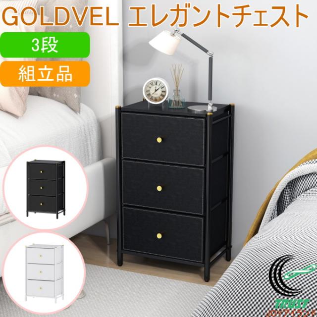 GOLDVEL エレガントチェスト 3段 送料無料 組立式 チェスト 引き出し 引出し 衣装ケース たんす タンス 収納 かわいい かっこいい オシャレ おしゃれ ブラック ホワイト 家具 インテリア パール金属