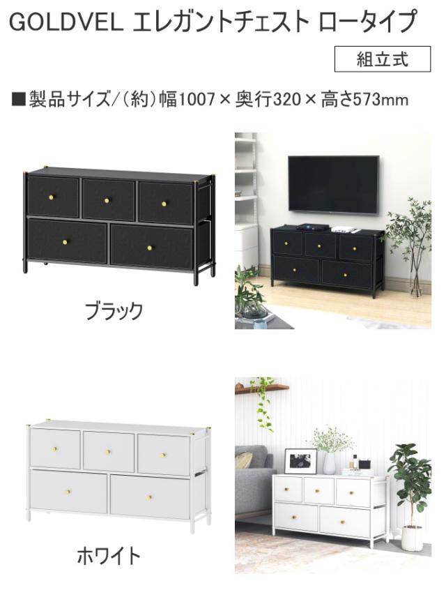GOLDVEL エレガントチェスト ロータイプ 送料無料 組立式 チェスト 引き出し 引出し 衣装ケース たんす タンス 収納 かわいい かっこいい オシャレ おしゃれ ブラック ホワイト 家具 インテリア パール金属