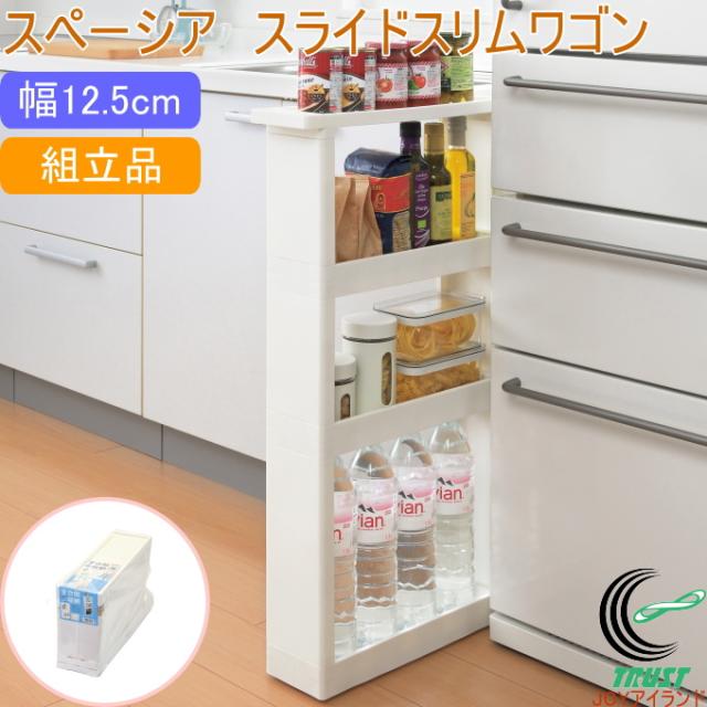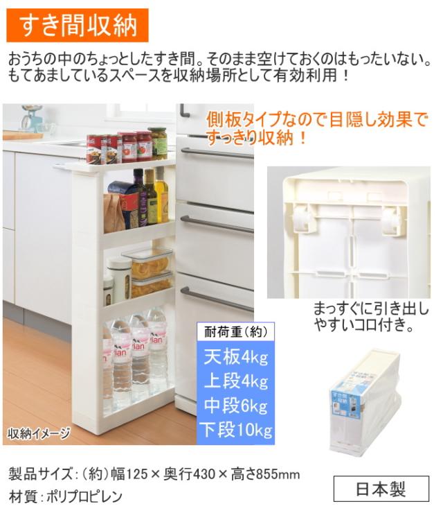 スペーシア スライドスリムワゴン4段 HC-280 日本製 すき間収納 キッチン収納 スリムスットカー 収納 ストッカー ラック ワゴン すき間 隙間 スリム 棚 キッチン 洗面所 脱衣所 ランドリー サニタリー シンク コロ付き ホワイト パール金属