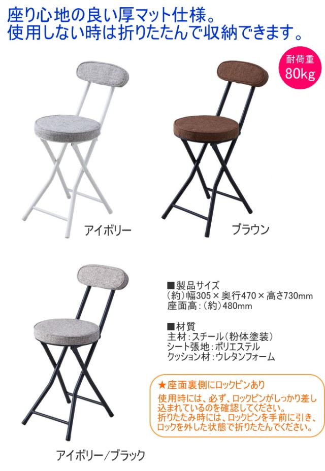 ファブリック折りたたみパイプチェア 背付 1台 椅子 イス いす チェアー パイプ椅子 スツール 折り畳み コンパクト 丸椅子 厚マット 背もたれ付き パール金属