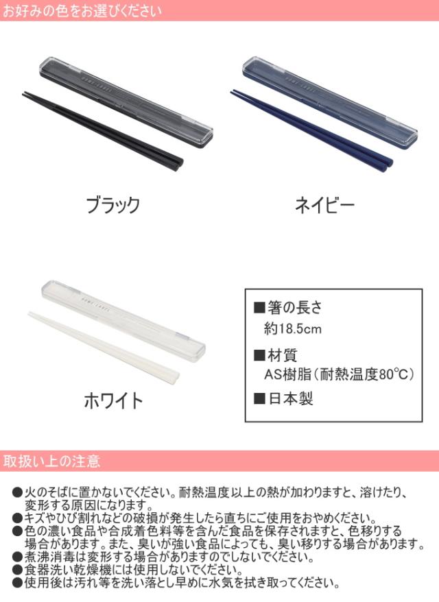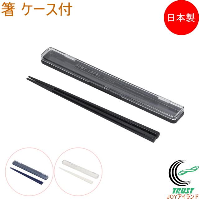 ホームレーベル II 箸 ケース付 1個 日本製 箸 はし 箸ケース 携帯 弁当 ネイビー ホワイト ブラック ランチグッズ カトラリーセット ネコポス対応