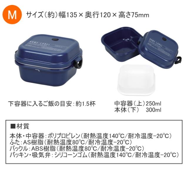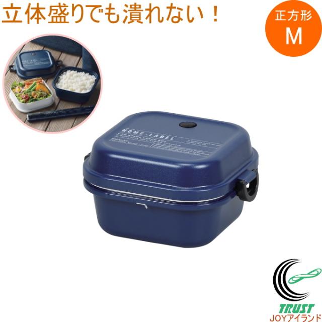 ホームレーベルII ランチボックス 正方形 Mサイズ ネイビー 1個 D-6725 日本製 弁当箱 お弁当箱 ランチボックス 正方形 電子レンジ対応 2段弁当 のっけ弁当