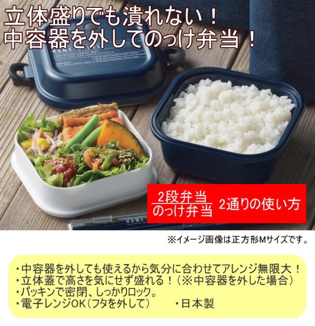 ホームレーベルII ランチボックス 正方形 Sサイズ ホワイト 1個 D-6726 日本製 弁当箱 お弁当箱 ランチボックス 正方形 電子レンジ対応 2段弁当 のっけ弁当