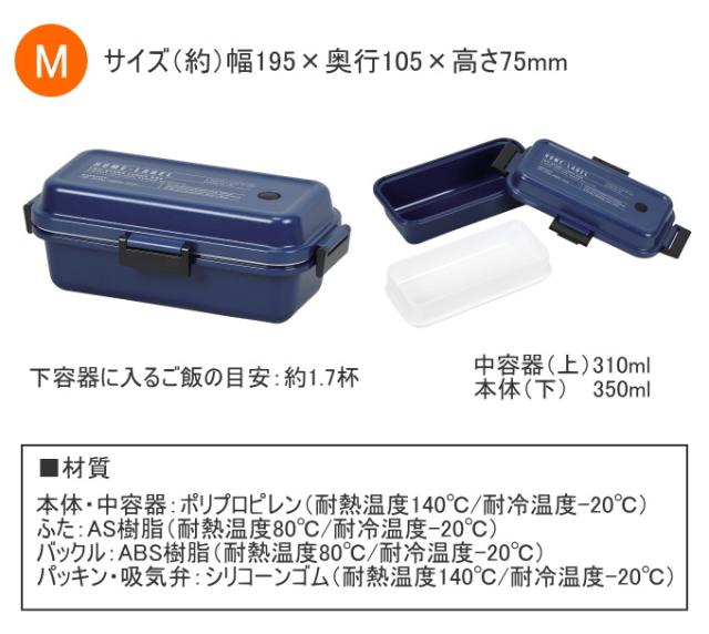 ホームレーベルII ランチボックス 長方形 Mサイズ ネイビー 1個 D-6722 日本製 弁当箱 お弁当箱 ランチボックス 長方形 電子レンジ対応 2段弁当 のっけ弁当