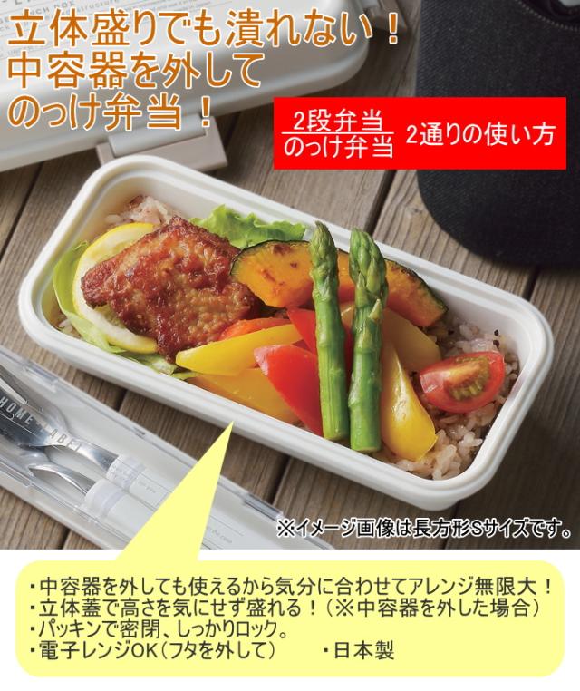 中容器を外しても使えるから気分に合わせてアレンジ無限大! 2段弁当・のっけ弁当2通りの使い方ができます。 立体蓋で高さを気にせず盛れる!※中容器を外した場合 フタを外して電子レンジOK。 ※食器洗い乾燥機には使用しないでください。 ※電子レンジで使用する場合は必ずフタを外してご使用ください。 ※画像はイメージです。箸やスプーンなどのカトラリーは付属していません。 ■その他の弁当箱はこちら↓ 弁当箱 |