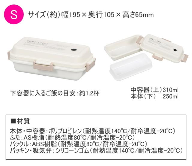 ホームレーベルII ランチボックス 長方形 Sサイズ ホワイト 1個 D-6723 日本製 弁当箱 お弁当箱 ランチボックス 長方形 電子レンジ対応 2段弁当 のっけ弁当