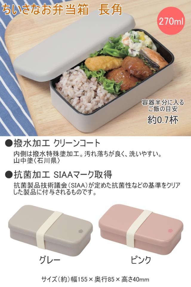 抗菌クリーンコート ちいさなお弁当箱 長角 1個 日本製 弁当箱 お弁当箱 ランチボックス 270ml グレー ピンク 小さい 小さめ おしゃれ 撥水加工 抗菌加工 山中塗