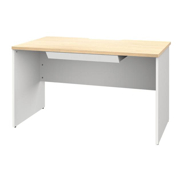 オフィスデスク 引出し付き 幅120×奥行70cm 木製 PLANN ( 法人限定 デスク 事務机 シンプル 机 収納付き 引出し パソコンデスク ワークデスク 平机 オフィス 会社 木目調 配線受け 背面化粧仕上げ 事務所 オフィス家具 )