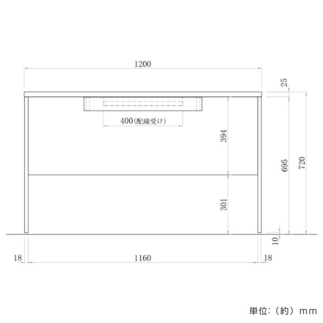 | 材質 | 本体:低圧メラミン樹脂化粧木質ボード、 PVCエッジ 配線受け:スチール(粉体塗装) アジャスター:PP |