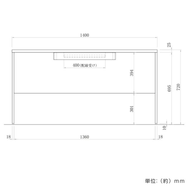 | 材質 | 本体:低圧メラミン樹脂化粧木質ボード、 PVCエッジ 配線受け:スチール(粉体塗装) アジャスター:PP |