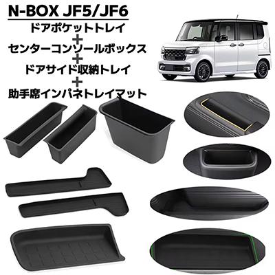 4点セット N-BOX JF5 JF6 NBOXカスタム 車用 センターボックス+ドアポケットトレイ+ドアサイド収納トレイ+助手席インパネトレイマット 内装 エヌボックス 装着簡単