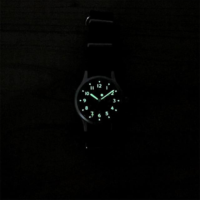 文字盤上の数字・インデックス・針の蓄光塗料にはスイス製腕時計にしか使用を許されていない「LumiNova(R)」塗料を採用し、通常のルミナスより蓄光時間・光が強化されています。