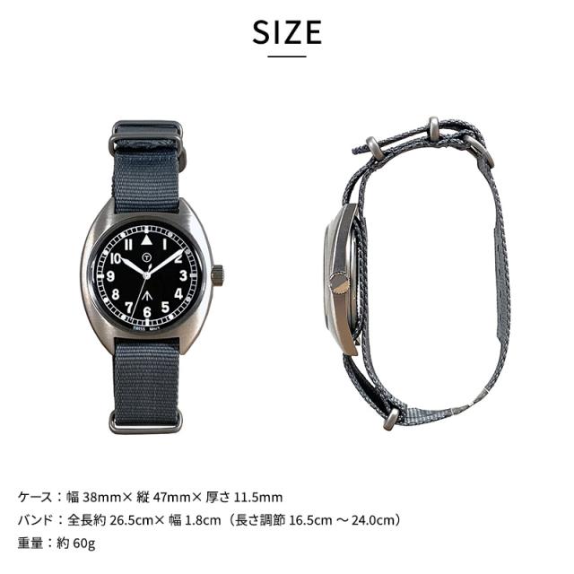 雰囲気抜群なミリタリーウォッチ英国空軍仕様をベースに、当時のミルスペックを忠実に再現しつつ、サイズ感をアップデートしてケース径を38ミリに拡大しました。