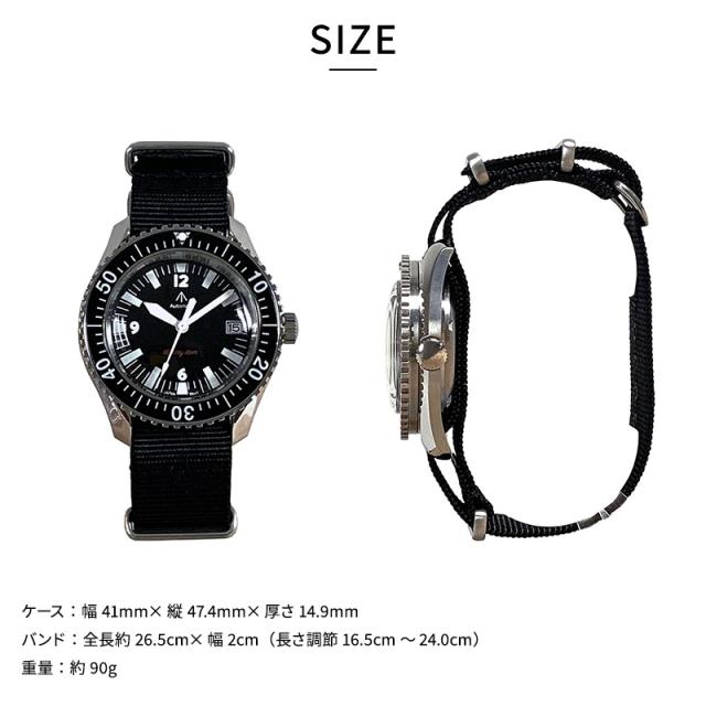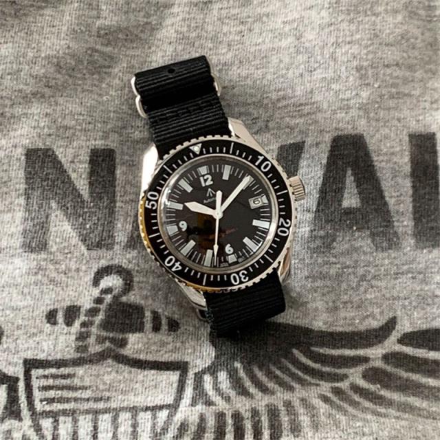 雰囲気抜群なミリタリーウォッチ英国海軍ダイバー仕様をベースに、当時のミルスペックを忠実に再現しつつ製作致しました。