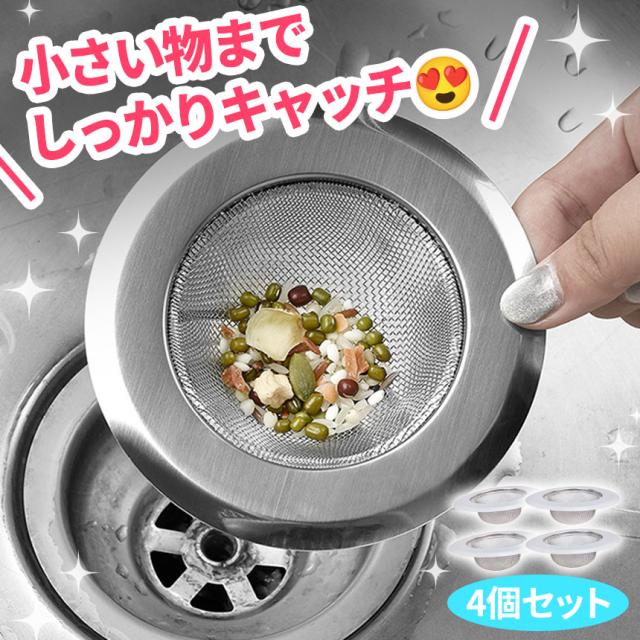 排水口 ゴミ受け 排水溝 4個セット 排水カゴ キッチン シンク 生ごみ ゴミ ごみ 生ゴミ ステンレス 網 ネット 料理 ステンレスゴミ受け 排水口ゴミ受け 流し 台所 洗面台 髪の毛 お風呂 パンチング 取り キャッチ ヘアキャッチャー 掃除 清潔 直径11.5cm 水捌け 水はけ