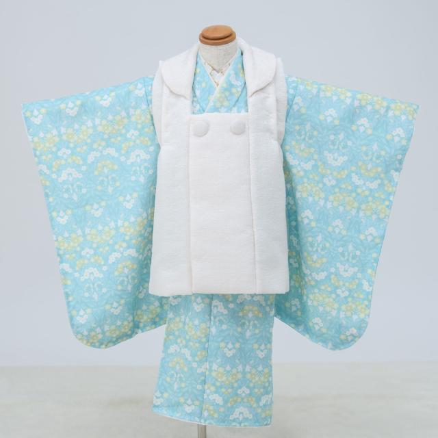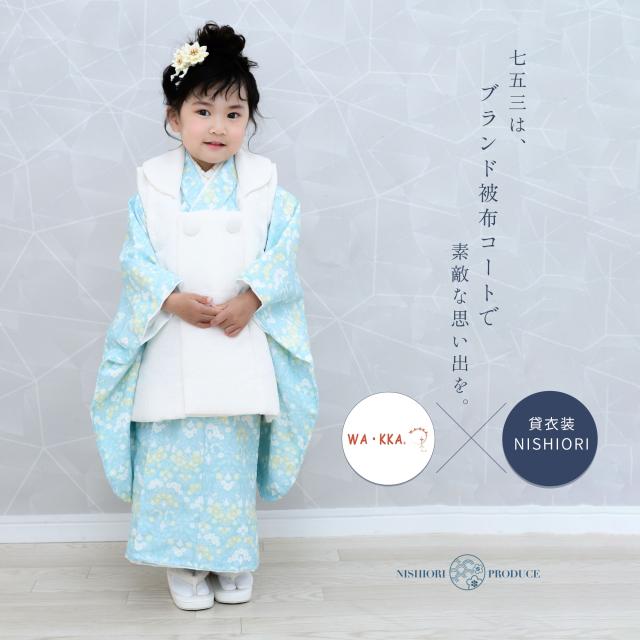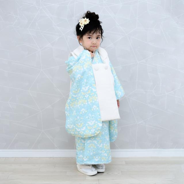 京wakka 七五三 レンタル 女の子 3歳 着物 被布コート フルセット 753着物 着物レンタル 貸衣装 七五三 三歳 子供着物 女児 子ども 結婚式 和装 小花 青 白【往復送料無料】新品足袋プレゼント No.308
