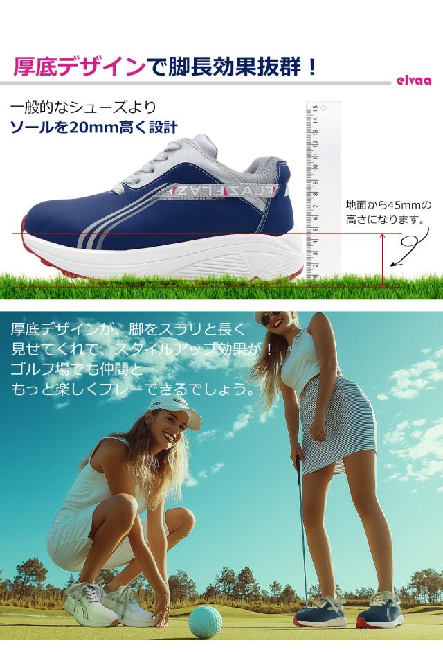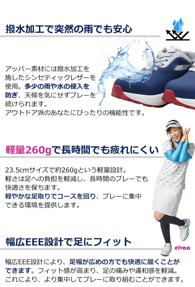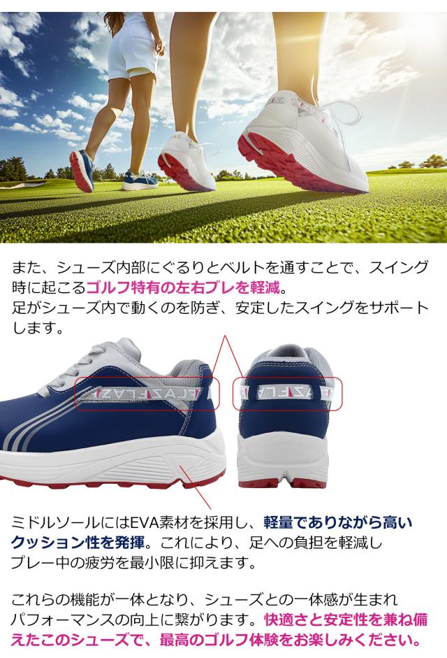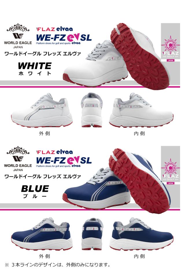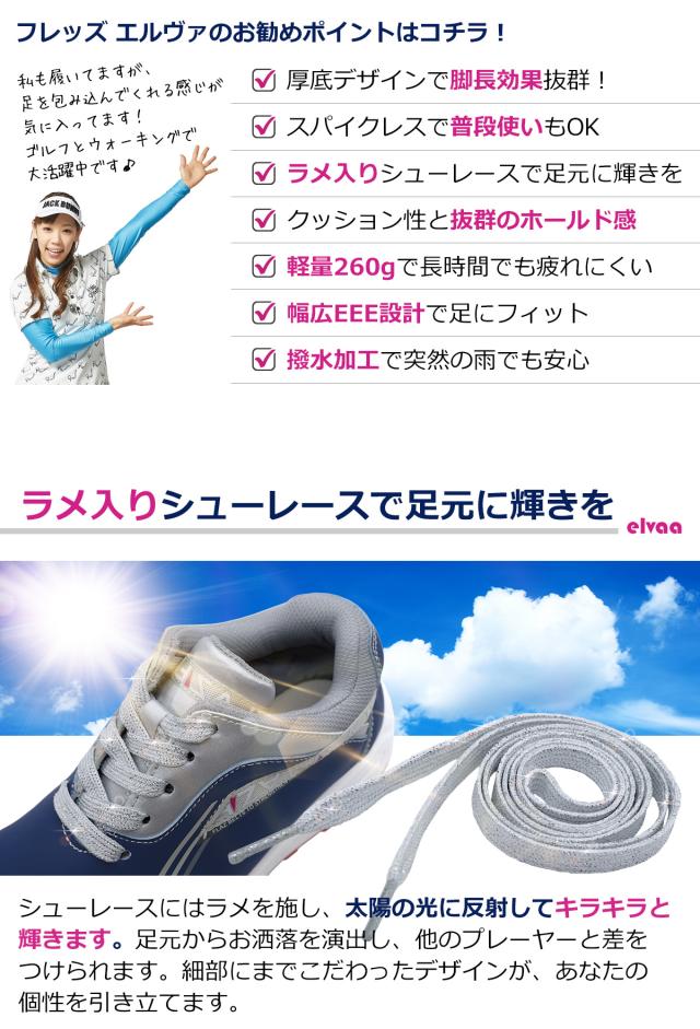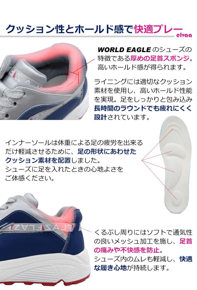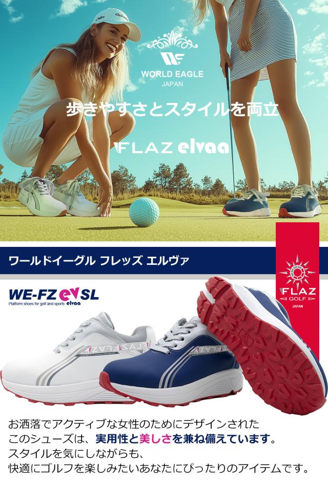 春のグリーンキャンペーン ワールドイーグル レディース フレッズ エレヴァ スパイクレス ゴルフ ハイシューズ WE-FZEVSL-X 厚底 幅広 3E ラメ入り靴紐 疲れない 歩きやすい ホワイト ネイビー 防水 靴 スニーカータイプ