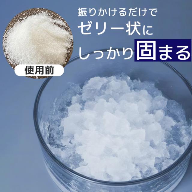 | ご使用方法 | 液体500ccにつき、本品5g(付属スプーン1杯分)を目安にご使用ください。 固まり具合が弱い場合は、本品を適宜追加してください。 【油に使用する場合】 固める油と同じ比率の水を加えてからご使用ください |