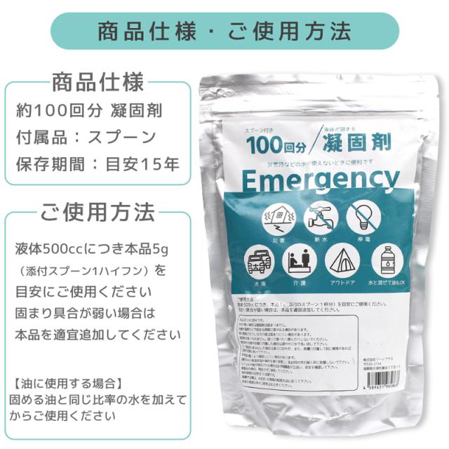 凝固剤 100回分 トイレ 簡易トイレ 災害用 消臭 抗菌 凝固剤のみ 防災 ビニール袋 油 食べ残し 防災グッズ 長期保存 地震 台風 断水