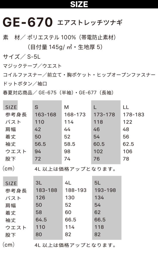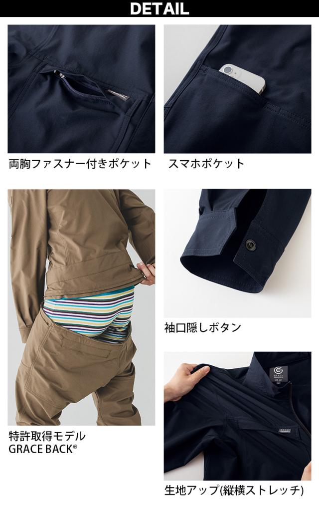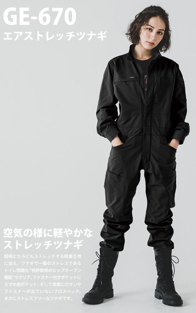 2024年秋冬新作 GRACE ENGINEERS GE-670 エアストレッチツナギ 防寒ツナギ 軽量ストレッチ秋冬ツナギ服 ヒップオープン キャンプ 釣り バイク メンズ カジュアル ユニフォーム 作業服 作業着 かっこいい おしゃれ S-4L