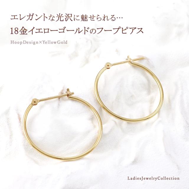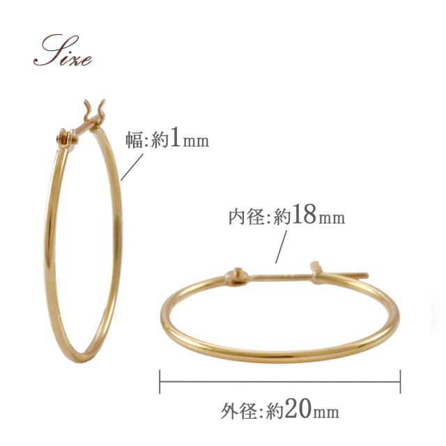 フープピアス 18K イエローゴールド シンプル 大きめ 20mm おしゃれ 華奢 地金ピアス フープ ピアス 18金 K18 輪っか リングピアス 可愛い 上品 細い 細身 地金だけ 地金のみ プレゼント 記念日 お誕生日 お祝い ギフト 女性 カノジョ 家内 嫁 K18YG 母の日 ギフト 2026