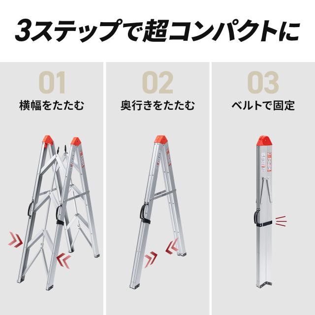脚立 コンパクト スリム 収納 3段 軽量 アルミフレーム 車載 耐荷重150kg[150-SNCSTL36]