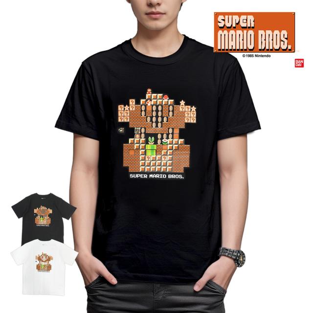 1985年に発売されて以来、日本だけでなく世界的な大人気ゲームとして、幅広い世代から愛され続けている『スーパーマリオブラザーズ』。ゲームのステージがデザインされた半袖Tシャツが登場しました。マリオはもちろん、お馴染みのブロックやコインなどのアイテムなどが描かれています。カラーはブラック・ホワイトの2色展開。サイズはS〜XLと、豊富に取り揃えています。