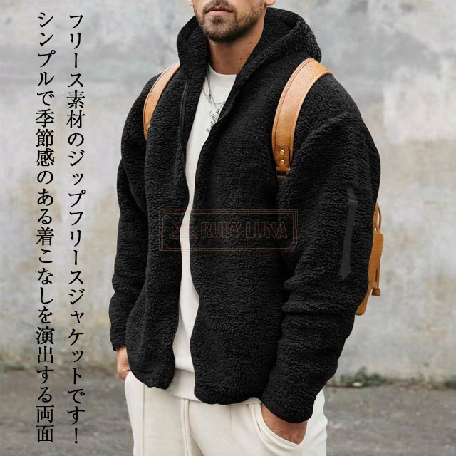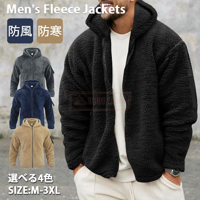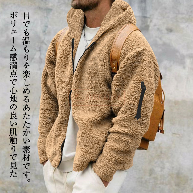 最安挑戦 春新作 送料無料 新作 フリースジャケット メンズ ジャケット 秋冬 両面フリース 防風 防寒 無地 ボアジャケット 暖かい 両面着用 シンプル カジュアル ジップアップジャケット モコモコ ボアコート ブルゾン
