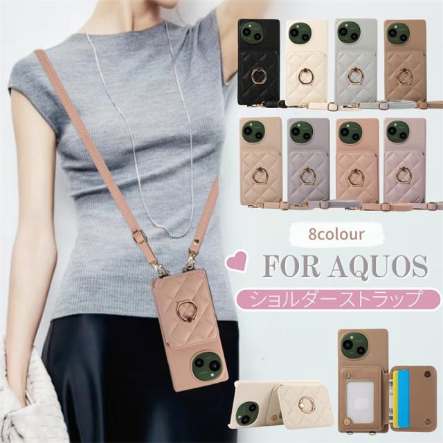 スマホショルダー AQUOS sense10 R9 ケース wish5 wish4 wish3 sense8 ケース スマホケース ショルダー タイプ ストラップ付き AQUOS sense 9 7 7Plus 6 6S R10 R9 R8 Pro 携帯ケース ショルダー くすみカラー 大人 女子 かわいい おしゃれ カラビナ リング ベルト付き