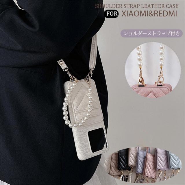 シャオミ Xiaomi 14 Ultra ケース Redmi Note 13 Pro ケース 真珠パール ストラップ カード収納 Redmi Note 13 Pro Plus レッドミー ノート13プロ プラス ケース Redmi Note 13 Pro Xiaomi 13T Pro 肩掛け おしゃれ 首掛け スマホショルダー ショルダーストラップ付き