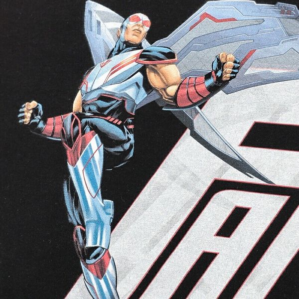 空飛ぶアベンジャーファルコンのプリントがカッコいいTシャツです!