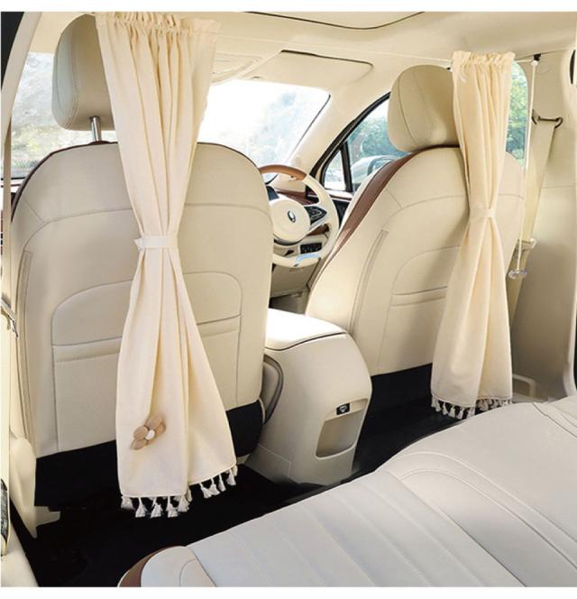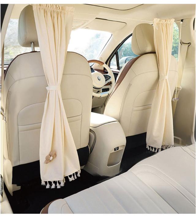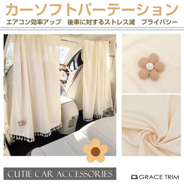 前席と後席を仕切ることができるソフトパーテーションです。 コットン素材の柔らかい印象がカワイイ車にピッタリ! フックと吸盤が付属しているのでお車に合わせて自由に設置が可能です。 後席をプライベート空間にできるのはもちろん、前席のエアコン効率を上げるメリットもあります。 |