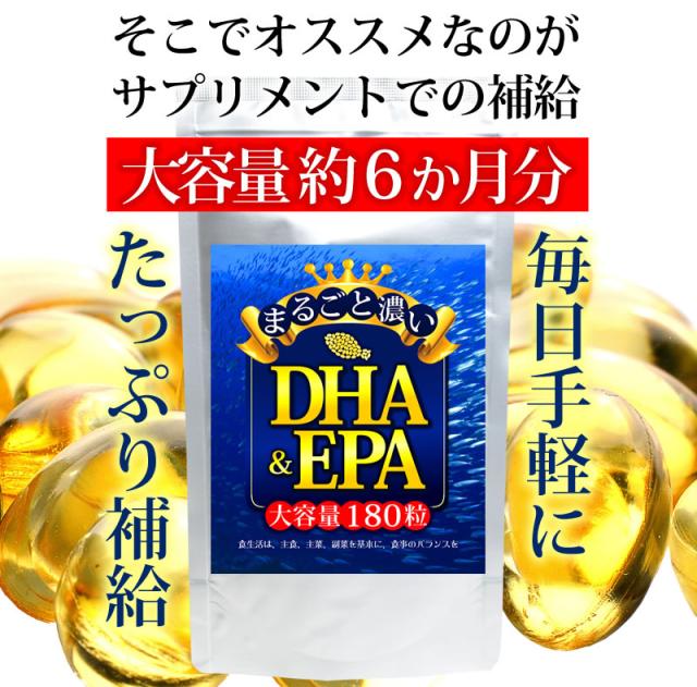 DHA EPA サプリ 約6か月分 180粒 ソフトカプセル dha epa オメガ3 必須 脂肪酸 多い 豊富 魚 青魚 成分 精製 魚油 健康 サプリメント まるごと濃いDHA&EPA