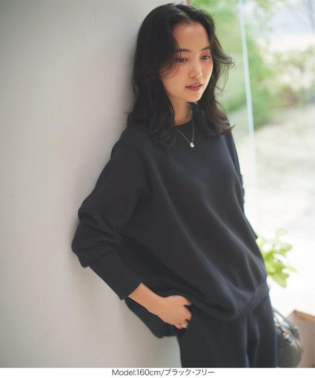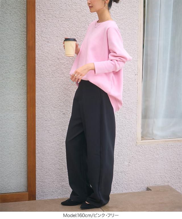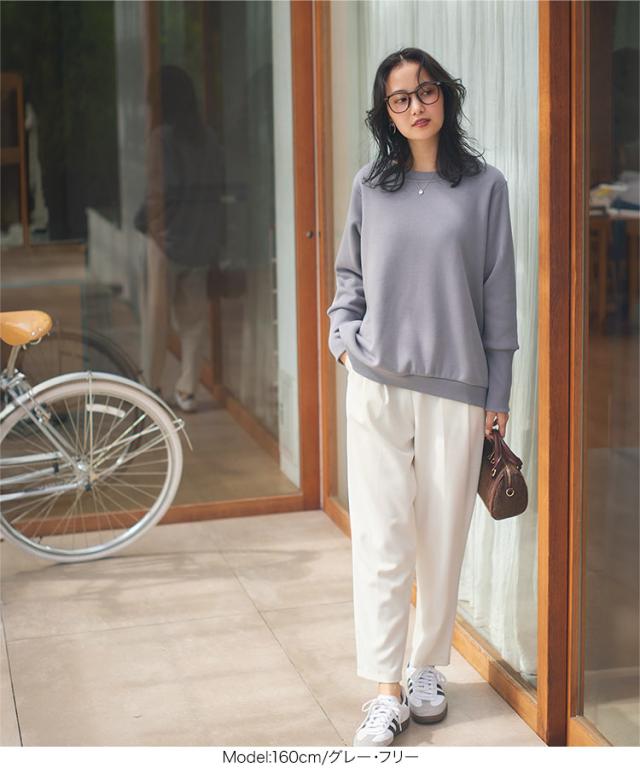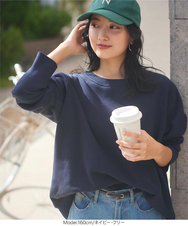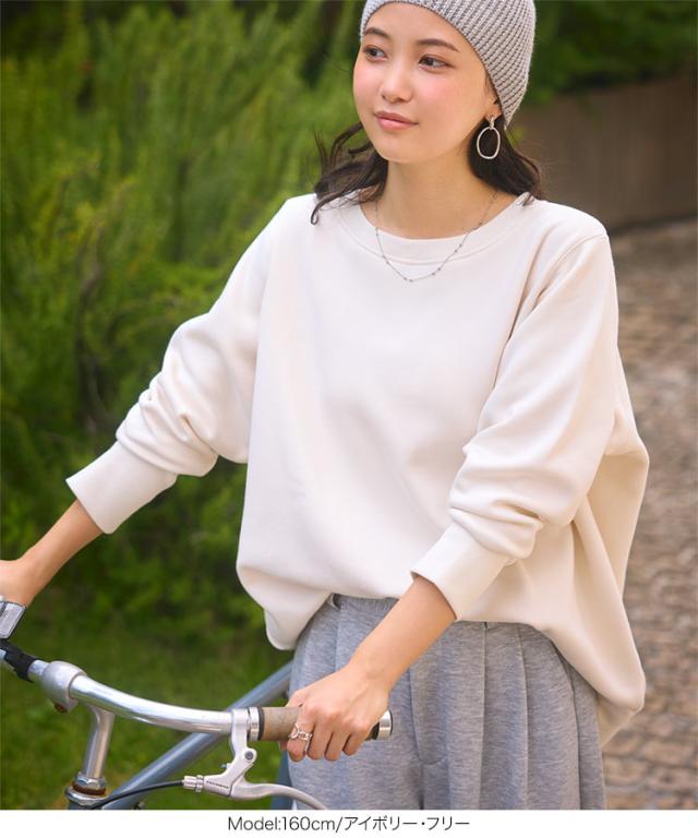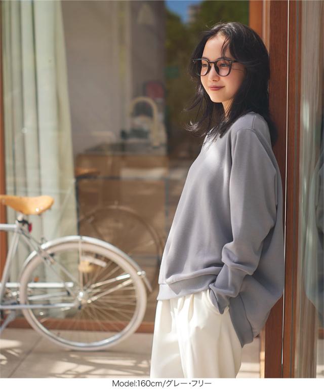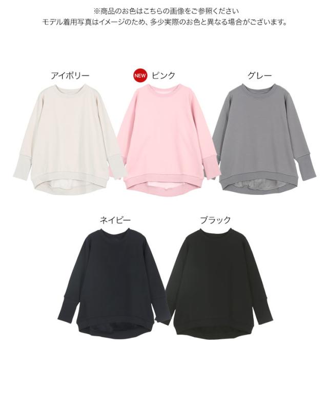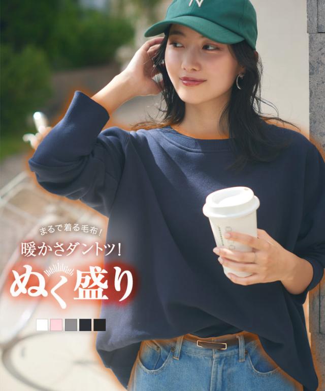 [ ぬく盛り ] ドルマンプルオーバー C7278 入荷済 レディース 20代 ぬく盛り ぬくもり 裏起毛 裏シャギー トップス スウェット プルオーバー 丸首 Uネック 長袖 リブ 前後差 暖かい 着る毛布 まるでこたつ こたつ 秋 冬 最暖