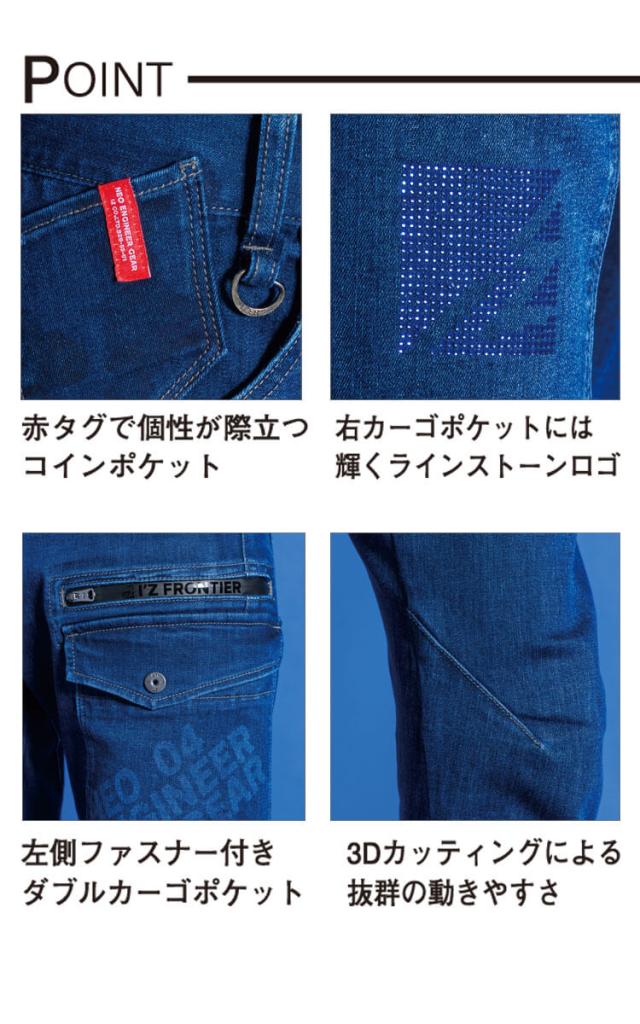 [即日発送]数量限定 アイズフロンティア IZ FRONTIER 3Dストレッチラインストーンデニムカーゴパンツ 7712