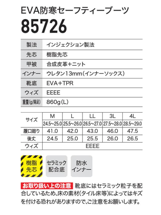 安全靴 XEBEC ジーベック EVA防寒セーフティーブーツ 85726 作業靴 樹脂先芯