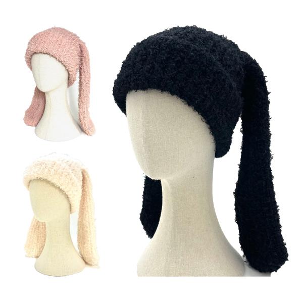 長〜いお耳のウサギ・ワッチ。毛糸のカール感が、ウサギのシルエットを程よく中和して普段使いしやすくなっています。かぶった時に耳が後ろにきれいに垂れるように工夫されたデザイン。お家での手洗いもOKです。【素材】ポリエステル100%。【頭回り】フリー(57cm〜65cm推奨)。伸縮性あり。【帽子の大きさ】縦21cm×横25cm(平置き時・耳部分含まず)。【耳の長さ】約39cm。【折り返し部分】8cm #メンズ #レディース #10代 #20代 #30代 #40代 #50代 #60代 #70代 #80代 #うさぎ #かぶり物 #うさぎ帽子 #兎 #ラビット #アニマル帽子 #動物キャップ #コスプレ #着ぐるみ #パーティー #ふわふわ #もこもこ #かわいい #イベント #セーラームーンうさぎ #黒 #ブラック #ピンク #白 #ホワイト #防寒 #耳付き #普段使い #ゆったり #あたたかい #秋 #冬 #ニット帽 #帽子