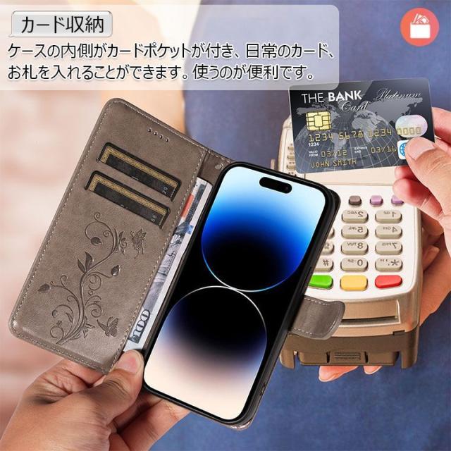 ●財布型ケースとして、名刺やお札などを入れるカードポケットがつき、日常生活に便利です。