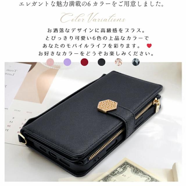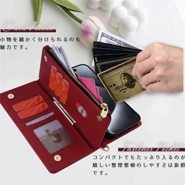 | 商品の特徴 | ショルダーストラップ付き、カードホルダー付き、スタンド機能、おしゃれなデザイン |