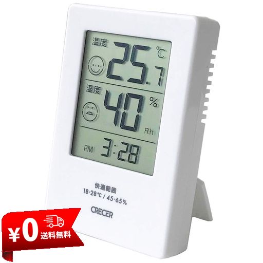 クレセル 温湿度計 デジタル 時計 機能付 壁掛け 卓上用 スタンド付 ホワイト 1.8×6×9CM