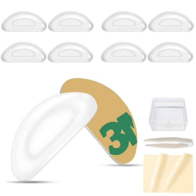 [VSuRing] 鼻パッド シール 柔らかい エアシリコン 厚み2mm 10個セット ずれ落ち防止 高さ調整 メガネ用 鼻あて 交換 ロック メガネ跡防止 眼鏡鼻パッド 鼻盛りまめパッド ピンセット 収納ケース クロス付 (10個, クリア)