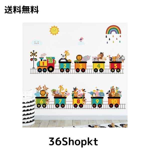Condessacity ウォールステッカー 子供 小さな電車 壁紙シール はがせる 動物 番号 漫画の電車 ウォールすてっかー こども部屋 幼稚園 保
