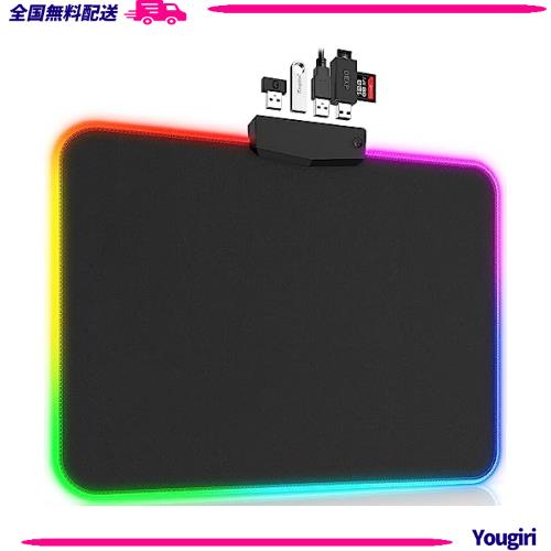 USBポートのみならず、HUBポートも付きのため、有線マウスは有線キーボードと同時に利用可能で、利便性をアップします。また、表面にも滑らかで、マウスをスムーズ に移動できます。より広い範囲で自由的に移動でき、使い心地が良いです。また、普通のマウスパッドだけではなく、 キーボードパッドとしてもご利用頂ける大きさです。RGBコントロールスイッチが備えて、14組のRGBライトモードのの切り替え及び2段階の照明レベル調節が簡単にでき、ゲー ムの雰囲気を演出でき、使い勝手が良いです。マウスパッドの裏目に天然ゴムを採用し、更に、網状にデザインされ、机の表面にしっかりと固定でき、パッドの任意的な移動 を防ぎ、ゲームをいつでもお楽しめます。耐水材料を使い、飲み物をこぼしたり、汗をかいたりしても布で軽く拭き取るだけで、綺麗になりお手入れが簡単です。また、軽量でサ イズもちょうどよく、持ち運びしやすいです。ご出張、旅行でもお気軽に使えます
