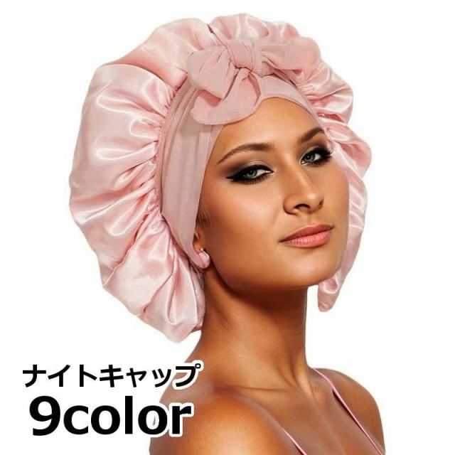 ナイトキャップ サテン調 レディース ヘアキャップ キャップ 帽子 夜 夜間 就寝用 ロングヘア 保湿 美髪 ヘアケア ダメージ