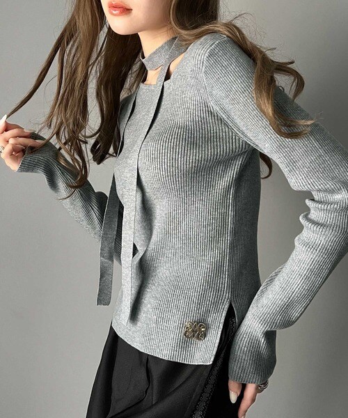 クラシカルエルフ(Classical Elf)/【mily bilet】アシメトリーネックオフショルマルチウェイチョーカー付きニットプルオーバー
